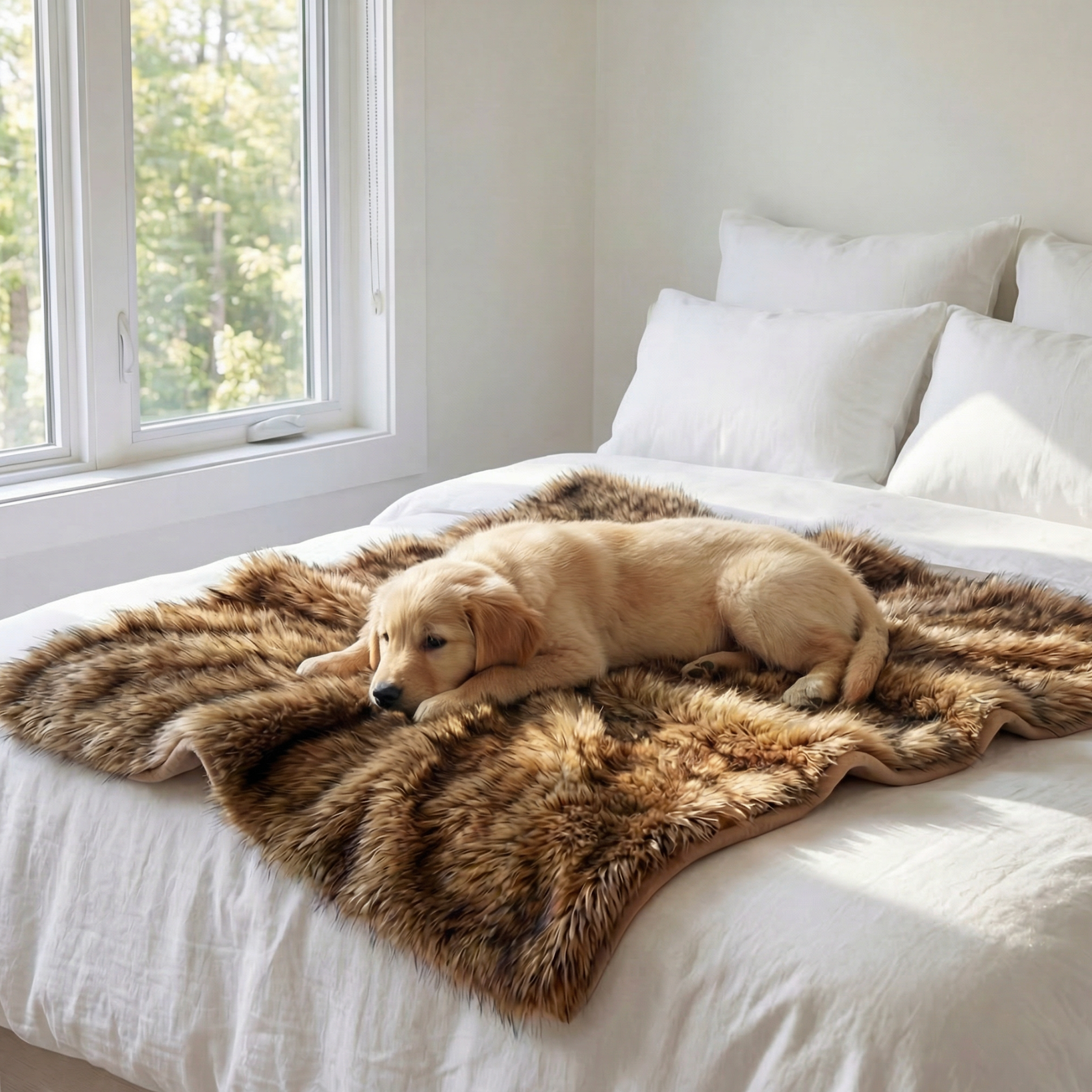 The faux fur surface mimics natural warmth and softness, helping dogs relax faster and feel secure. Especially loved by dogs that seek cozy, plush surfaces.