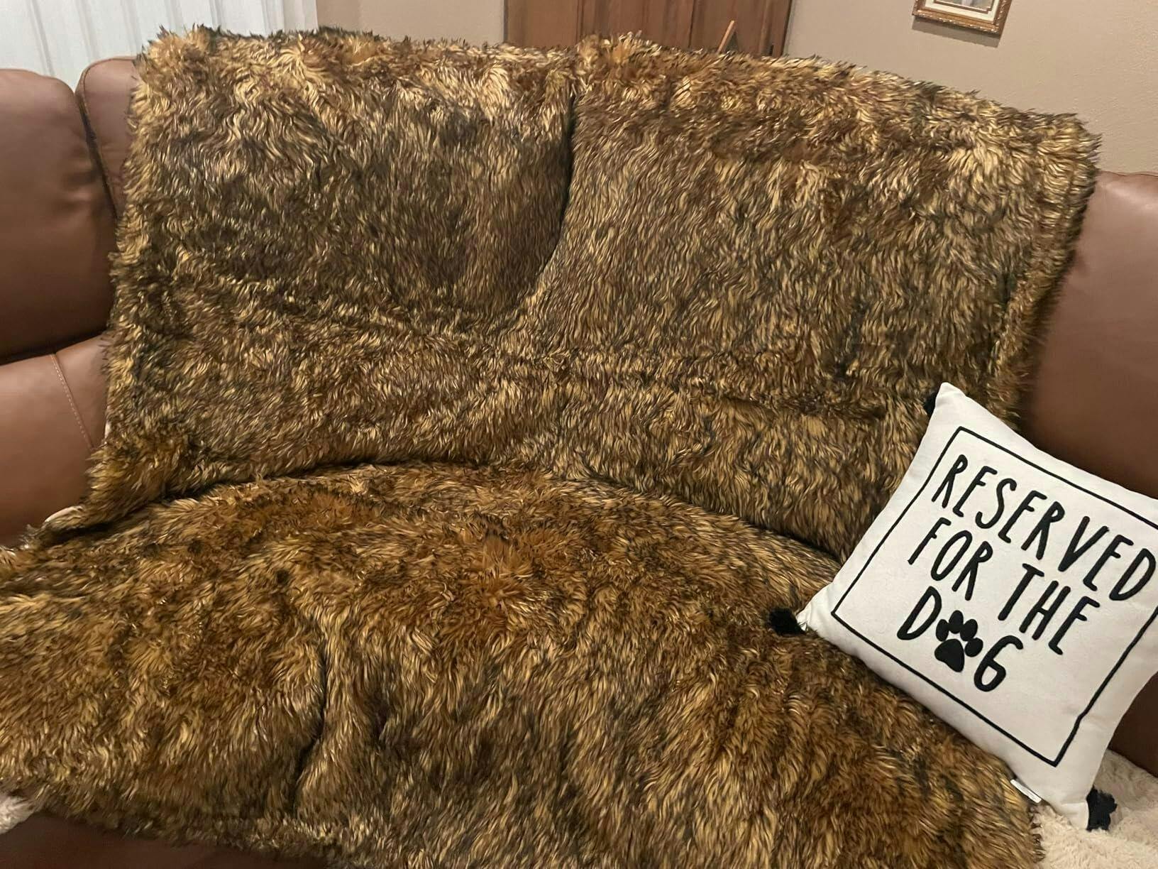 The throw is available in three sizes: 30" × 40",50" × 60", and 60" × 80", making it suitable for small, medium, and large dogs.